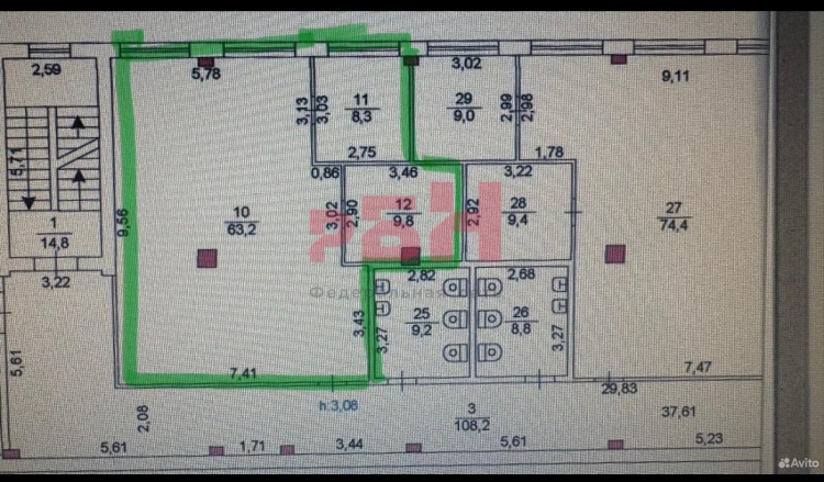 - большой кабинет 63,2 кв.м + 2 небольших кабинета 8,3 и 9,8 кв.м;