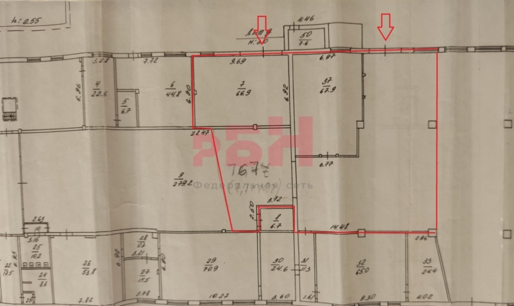 - границы помещения выделены на схеме красным контуром;
