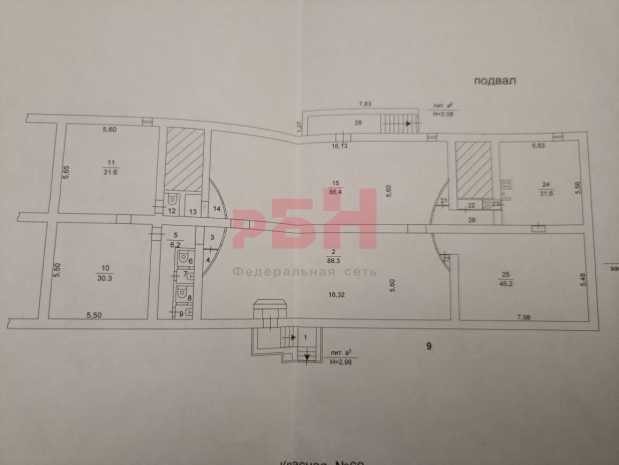 Продам помещение свободного назначения площадью 349,3 м² находящегося в цокольном этаже 5-ти этажного дома по адресу: